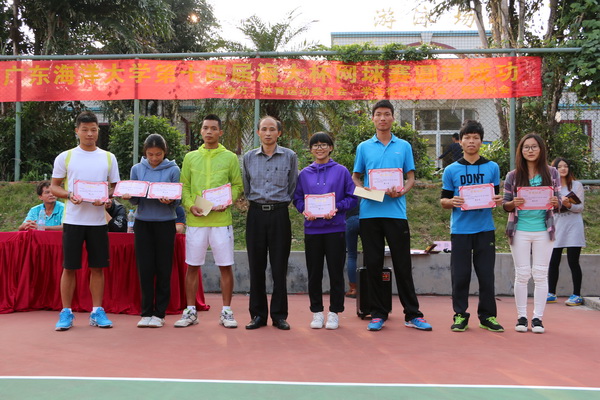 11月12日至19日,第十四届“海大杯”网球赛历经150场比赛胜利闭幕。朱古力av 获团体赛第一名,职业与技术学院、经济与管理学院、农学院分获团体第二、三、四名。黄阳喜同学获男子单打冠军,罗雄冰同学获女子单打冠军,陈铭汉和严智波获男子双打冠军,黄伟文,罗雄冰获混双冠军。朱古力av 副院长彭进,群体竞赛管理中心主任郭炎林、副主任翟庆文,体育运动委员会副秘书长莫善球,总裁判长钟静出席开闭式并为获奖运动员颁奖。