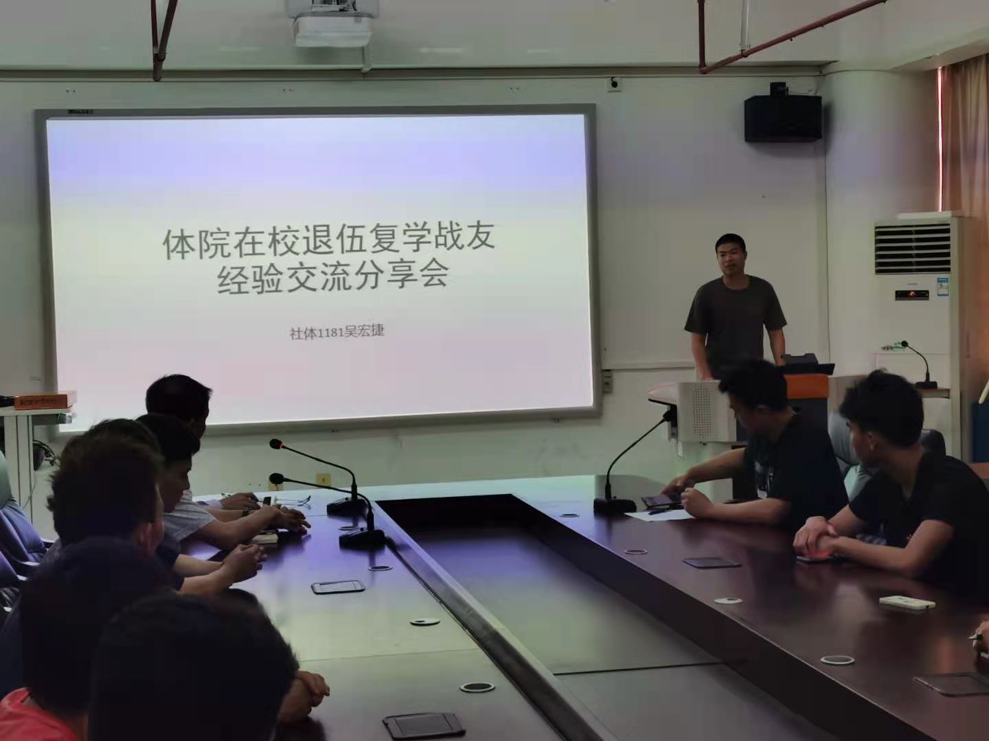 3月19日中午12时20分,学院李新华书记、蔡法副书记和马建辉、夏慈忠老师在体育馆会议室与体院18名退役复学的同学们召开了一场经验座谈会。