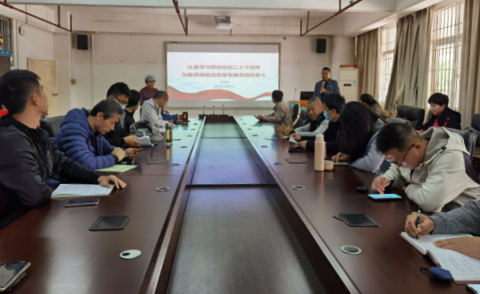 在湖光校区体育馆会议室举办学习贯彻党的二十大精神宣讲报告会。学院党委书记李新华作了题为《认真学习贯彻党的二十大精神 为推进体院高质量发展而团结奋斗》的专题报告。学院教职工现场聆听了报告。