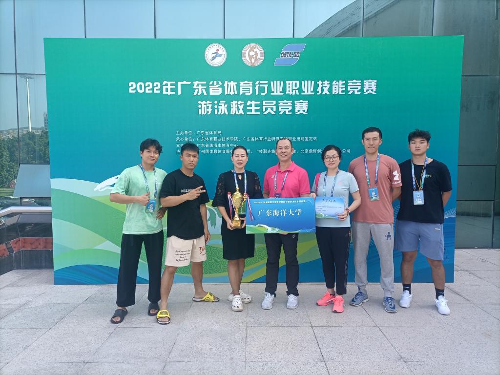 由广东省体育局主办,广东省体育职业技术学院和广东省体育行业特有工种职业技能鉴定站承办的2022年(因疫情比赛推迟)广东省体育行业职业技能竞赛游泳救生员竞赛于2023年4月14-16日在珠海体育中心游泳馆举行。来自全省29个单位、24支队伍共158名运动员分别参加团体竞赛和个人竞赛。朱古力av 代表队参加竞赛设置的4*25米假人接力和模拟救生两项团体比赛,模拟救生团体第二名,团体竞赛总分第二,为学校争得了荣誉。