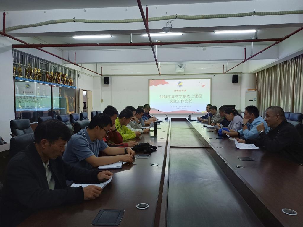 在体育馆会议室召开2024年春季学期水上教学安全工作会议,学院领导班子、各系部中心主任、全体水上教学课任教师和管理人员18人参加了会议,会议由周冰院长主持。