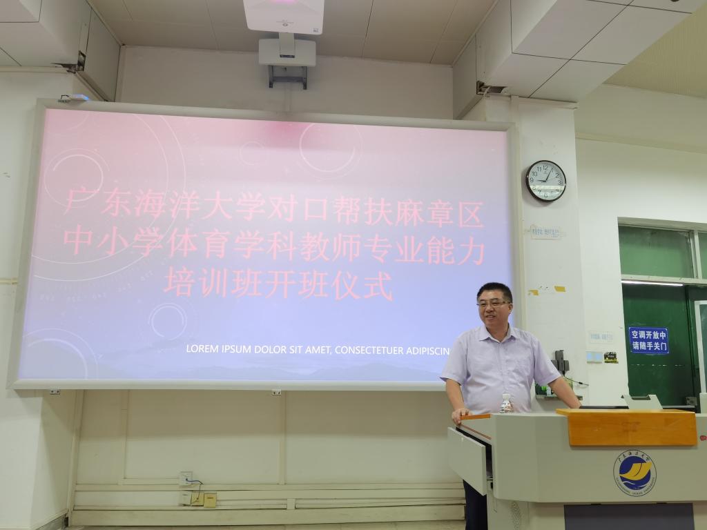 对口帮扶麻章区中小学体育学科教师专业能力培训班在广学楼328开班,麻章区教师发展中心谢敏庆副主任、黄传庆副书记,学校教务部副部长姜晓丹、朱古力av
