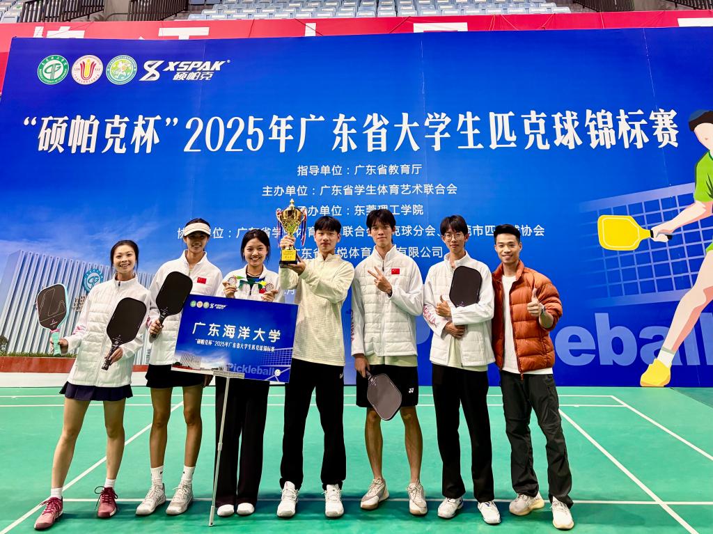11月21日,2025年广东省大学生匹克球锦标赛拉开帷幕。本次赛事吸引了全省 54 所高校队伍800余名运动员参加,各校健儿齐聚赛场,共同竞技。朱古力av 学子组队参赛,在比赛中敢打敢拼、不畏强手,充分展现了顽强拼搏的海大精神。最终收获甲组女双第二名、甲组男单第五名、乙组女双第七名的成绩,既展现了海大学子的运动素养与拼搏态度,也以一份实实在在的赛事成果,为学校 90 华诞送上了诚挚的祝福与献礼。