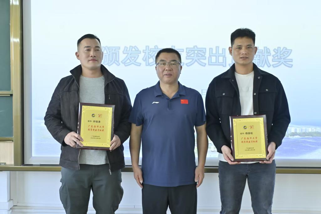 致辞过后,论坛举行了授牌与颁奖仪式。王明对书记为普宁市灰狼体育文化发展有限公司、德程体育文化 (广东) 有限公司两家合作单位授予“毕业生就业实习基地”牌匾。这一举措标志着学院在强化实践教学、拓宽就业渠道方面迈出坚实步伐,为在校生搭建起从校园走向职场的重要桥梁。同时,学院为长期心系母校发展、在各行业深耕有成并为学院建设作出突出贡献的许培涛、杨景松、孙敬和、符海建等校友颁发 “校友突出贡献奖”,以此表彰他们的无私奉献与深厚校友情谊。