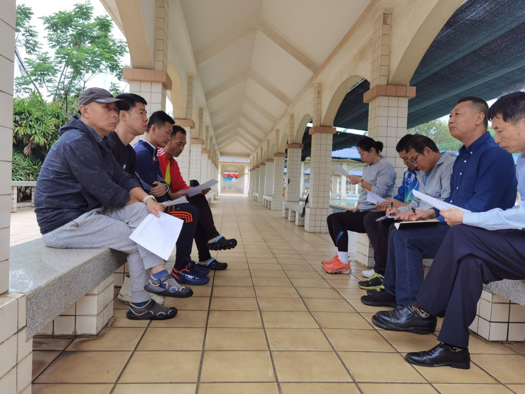 会后,在李新华的带领下到游泳池现场对游泳池的场地及设施器材进行了全面的检查。要求大家时刻紧绷安全这根弦,有担当意识,做好记录,确保不发生安全事故。顺利完成本学期教学训练任务和课外开放活动。
